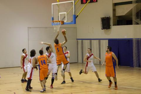 Títol: Bon partit del Sènior A Bar Snow CB Bellpuig contra CB Maristes Montserrat en el dia de la presentació del club BAR SNOW BELLPUIG Targa A.(6), Aldoma O(7), Ruiz V (16), Minguell S (6), [...]