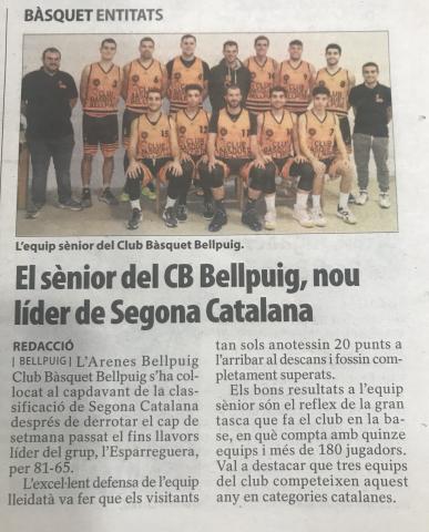 Ens fa il.lusió compartir aquesta notícia, que fa referència tant al lideratge del primer equip, com a la base del club. Agraïm un cop més l’atenció que rebem per part del Diari Segre. Salut i [...]