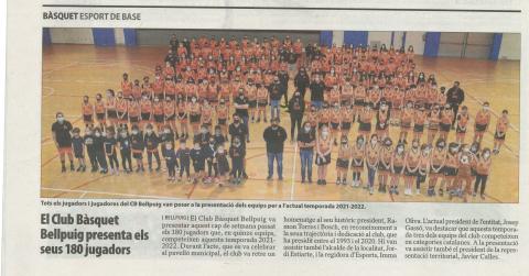 Avui dimarts 16 de novembre el Diari Segre es fa ressò de la presentació de la temporada 2021-2022, publicant la tradicional fotografia de família. Moltes gràcies per la vostra atenció! Salut i bàsquet!